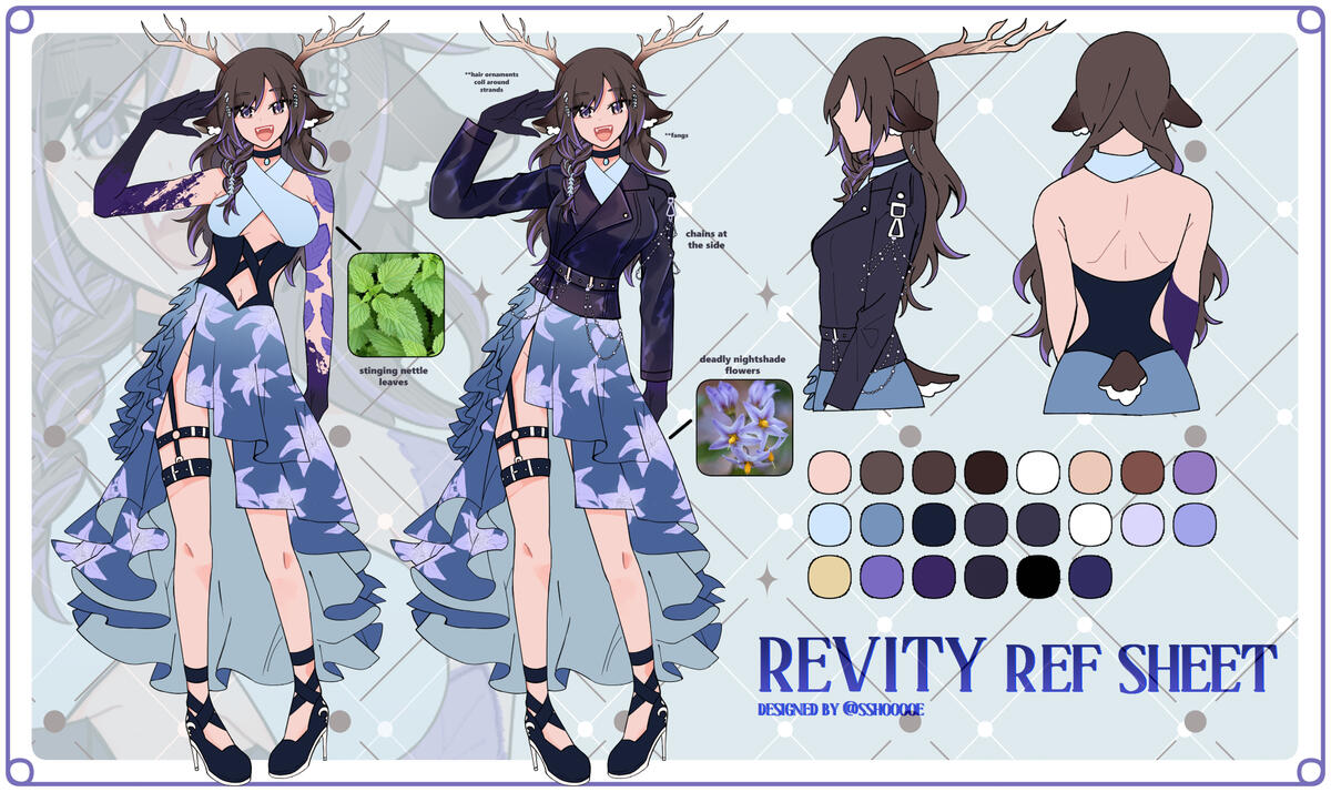 Hello! I am Revity (she/they), and I am a thirsty deergirl ENVtuber~I started streaming sporadically in late 2019, and I first debuted as a Vtuber in 2021. I enjoy playing a variety of RPGs, but I mainly play Genshin Impact, Honkai: Star Rail, and Final Fantasy XIV Online.I aim to create a welcoming, chill environment with good vibes and a generous sprinkle of lewd. I hope you can check out my streams and chill out with me!